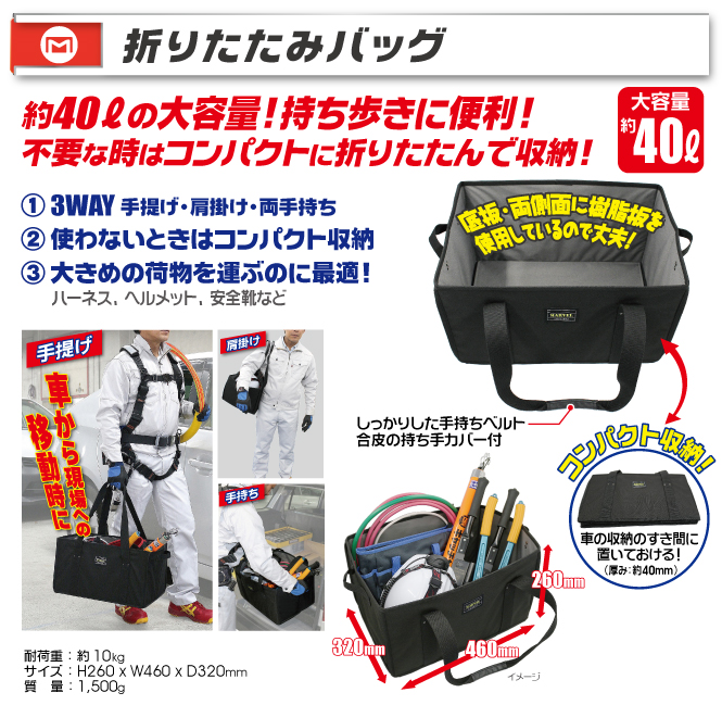 約40ℓの大容量収納!持ち歩きに便利!
